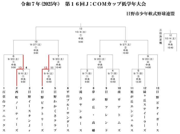 2025年9月7日 / 最終更新日時 : 2025年9月7日 renmei 試合結果 【9/6試合結果】第16回J:COMカップ低学年大会 一回戦 令和7年(2025年)第16回J:COMカップ低学年大会 一回戦●第一試合西町ノーティーズ ○13 – 4● 日野イースタンジュニア●第二試合日野ビクトリーズ ○13 – 11● 日野わかくさクラブ \ 最新情報をチェック / FacebookXBlueskyHatenaCopy